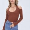 Details A knit crop top featuring a plunging surplice neckline, long sleeves, and a self-tie back closure.Content + Care – 47% rayon, 30% polyester, 20% nylon, 3% spandex – Hand wash cold Size + Fit – Model is 5’8′ and wearing a Small